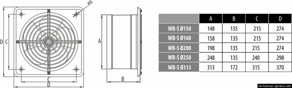 | WB-S Ø150 | 148 | 135 | 215 | 274 |
