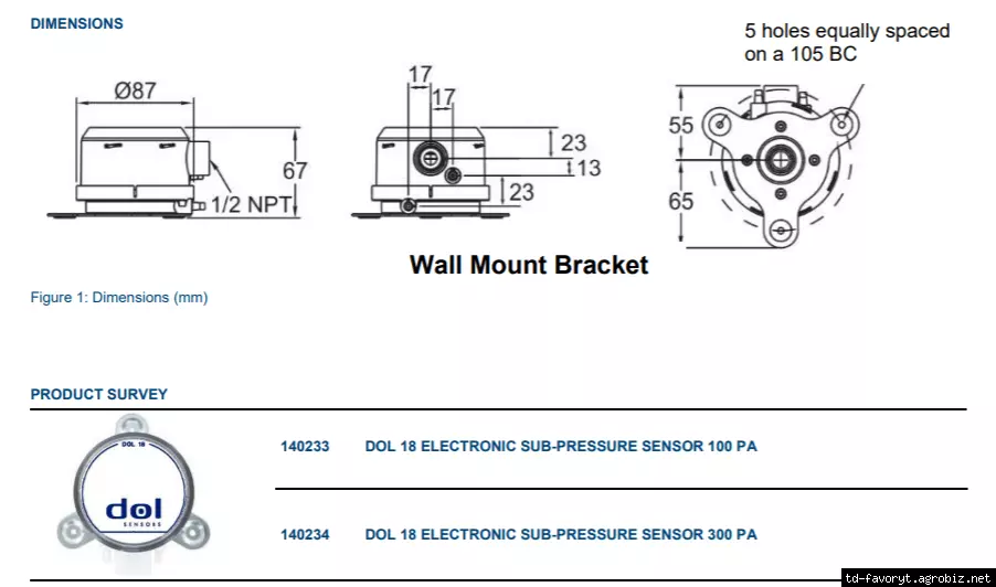Имеется широкий выбор датчиков DOL 18 с различным диапазоном измерений от 25 Па до 1250 Па и выходами 0 - 5 В, 0 - 10 В и 4 - 20 мА.