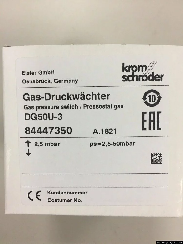 Для того, чтобы купить реле давления газ - воздух Kromschroder DG50U-3 нужно использовать заказной артикул, который соответствует вашей горелке или обратиться к нашим менеджерам по телефонам.