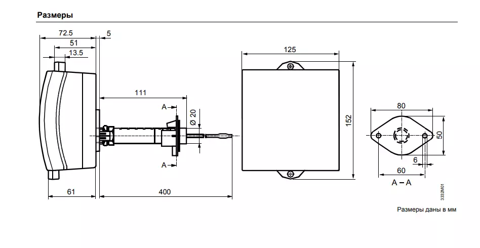 повітря і датчиком в одному корпусі. Призначено для монтажу на