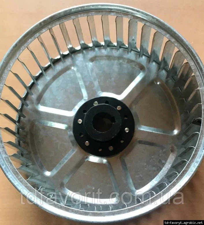 Крыльчатка имеет радиальный принцип работы который при перемещении воздуха изменяет его направление. Изготовлена крыльчатка из оцинкованной стали толщиной 0.6 миллиметра, и имеет лопасти загнуты вперед что делает ее более производительной.