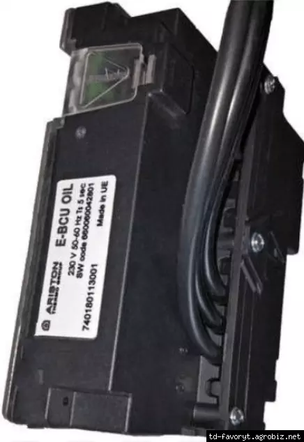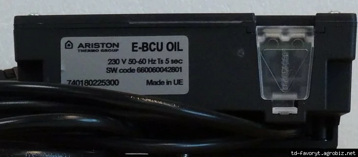 - блок управления и безопасности Ariston E-BCU OIL отслеживает и управляет работой горелки с воздушным наддувом. Благодаря тому, что ход программ управляется микропроцессором, обеспечивается
