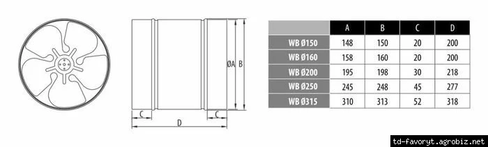 ТЕХНИЧЕСКИЕ ХАРАКТЕРИСТИКИ ОСЕВОГО ВЕНТИЛЯТОРА DOSPEL WB 250