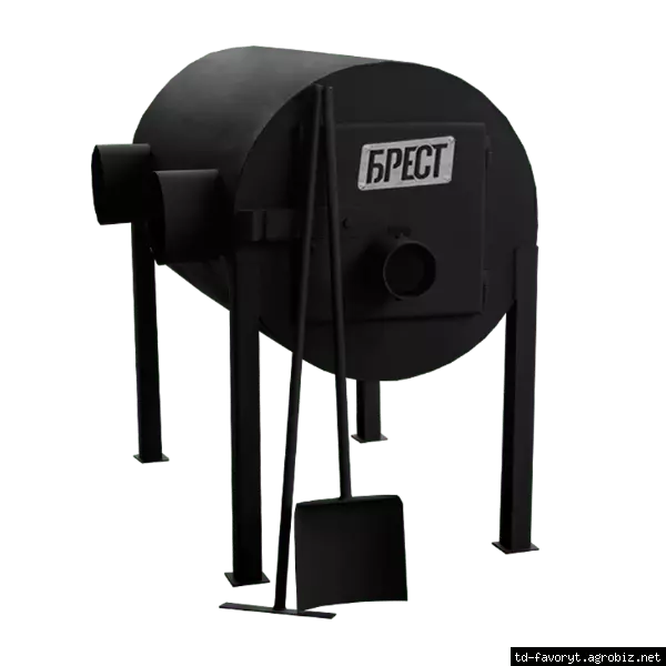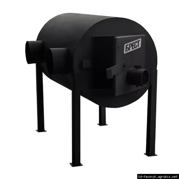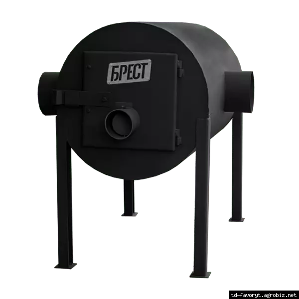 Для отопления производственных цехов, больших теплиц, птичников и прочих строений до 150 м.кв. или 350 м куб. подойдет буржуйка Брест 350. Наличие двух выходов теплого воздуха позволяет обогреть сразу несколько помещений без покупки еще одной буржуйки. Топка булерьяна имеет 80 см в длину и 42 см в диаметре, что позволяет работать печке на одной закладке топливного материала до восьми часов. Покрытие печи - жаростойкая краска, способная выдерживать температуру до 600 0С.
