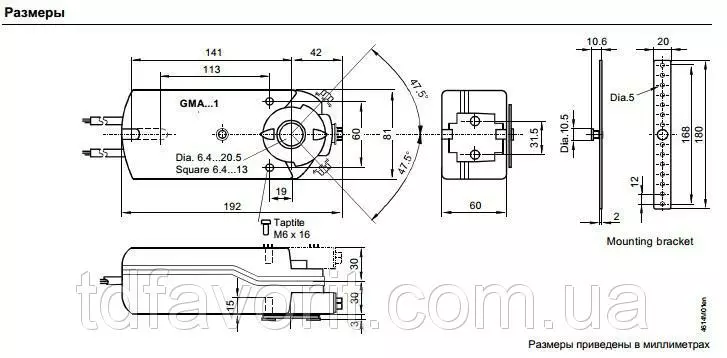 Привод воздушной заслонки GMA161.1E - поворотного типа AC/DC 24 В / DC 0…10 В, 7 Nм с пружинным возвратом 90/15 сПриводы с электромотором для двухпозиционного, трёхточечного и аналогового управления, с номинальным крутящим моментом 7 Нм, с возвратной пружиной, самоцентрирующимся адаптером вала, механически