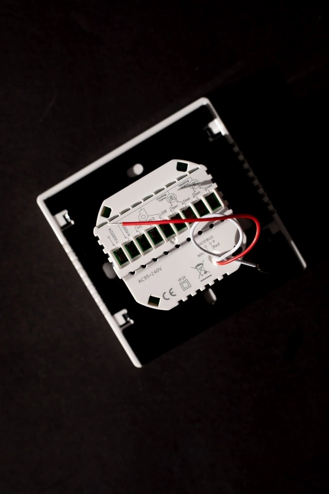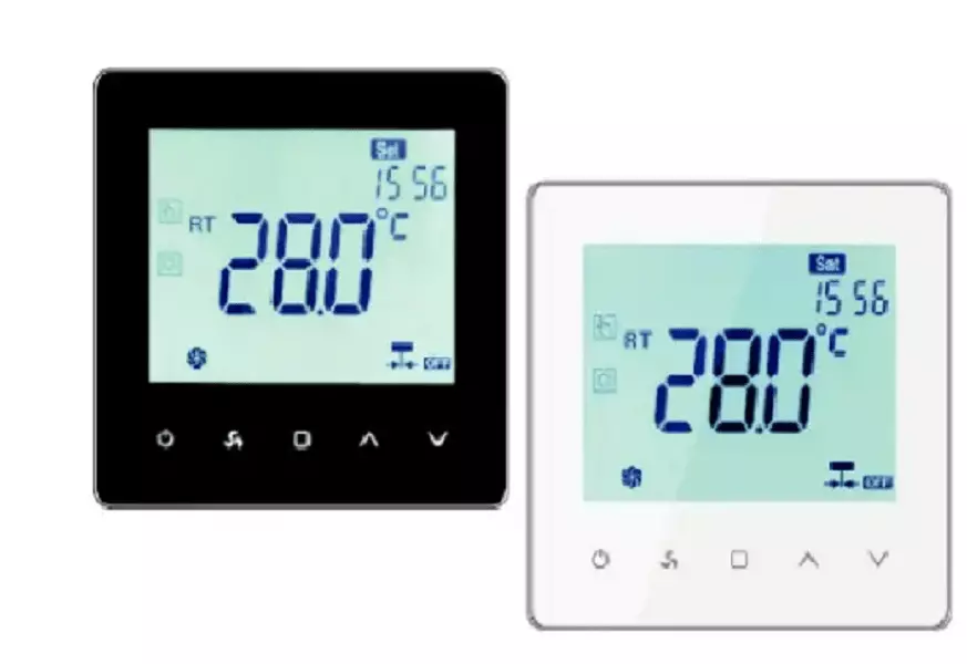 кімнатний термостат для фанкойлів, який використовується для контролю роботи вентиляторів і клапанів в кондиціонерах. Цей пристрій підтримує роздільну можливість підтримки комфортної температури в приміщенні і заощадження енергії.