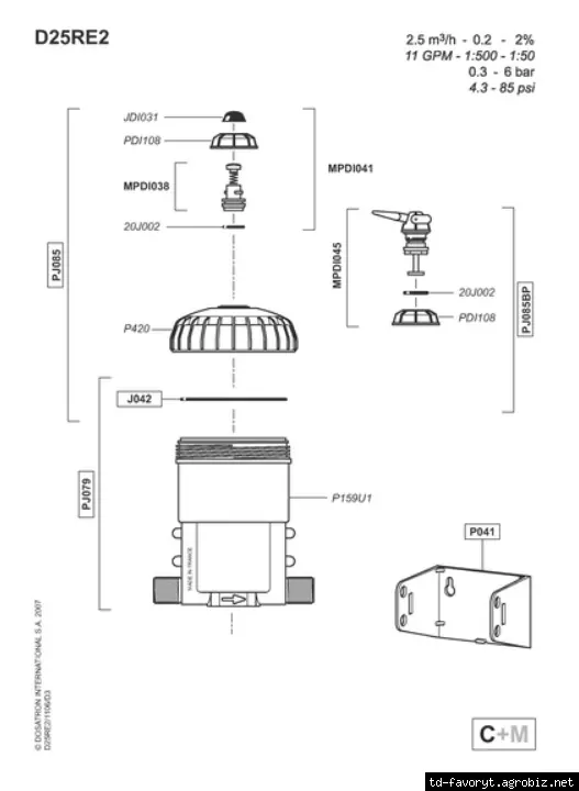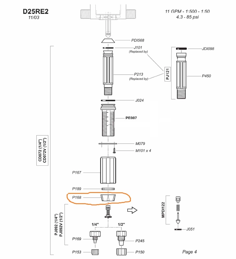Р168 Фиксирующая гайка для D25RE2/D45RE3/D400 Dosatron