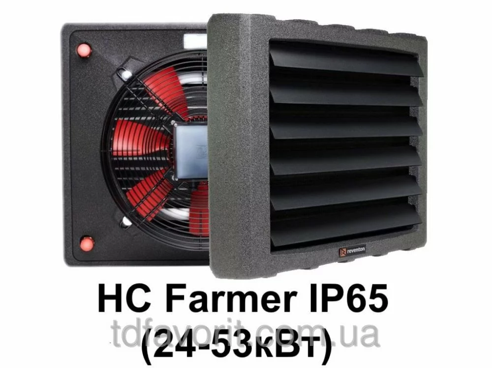 Reventon Farmer HCF IP65 водяной тепловентиляторТепловентилятор Reventon Farmer HCF IP65, 53 квт используют для нагрева большых помещений. Этот тепловентилятор создан для работы в строениях характеризующихся очень пыльной средой, высокой влажностью, а также высокой концентрацией аммиака в воздухе. Благодаря использованию покрытия LCE, устройства полностью покрыты защитной оболочкой, что помогает бороться с плесенью, грибком и бактериями в теплообменниках, новый корпус ЕРР – вспененный полипропилен это лёгкая и надёжная конструкция с отличными показателями: теплоизоляция и шумоизоляции, на 100% экологически чистая.