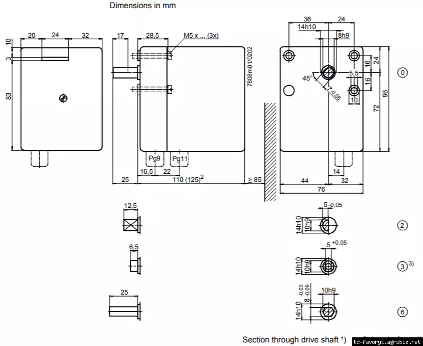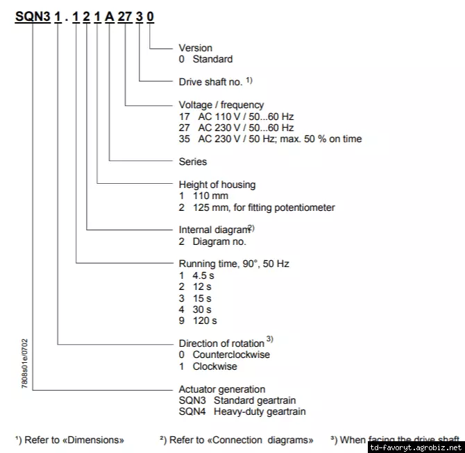 | Направление вращения привода: | SQN30 - против часовой стрелки |