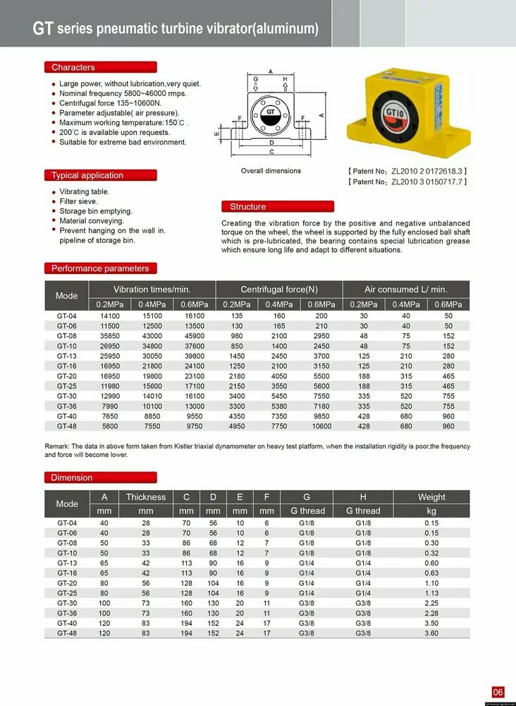 Турбинные пневмовибраторы Серия GT 16, производства KLSX Китай