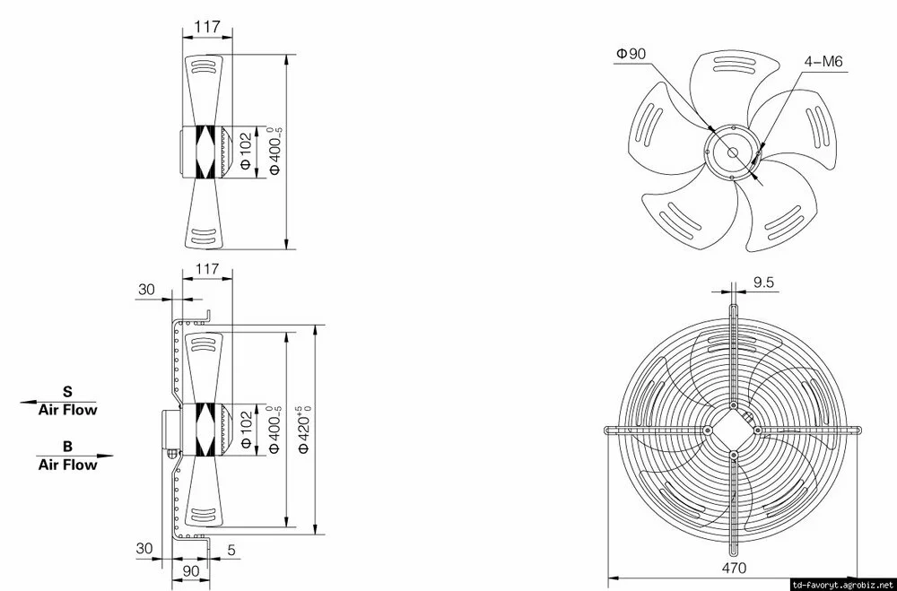 4. Диаметр лопастей вентилятора: 300мм; 350мм; 400мм; 450мм; 500мм;