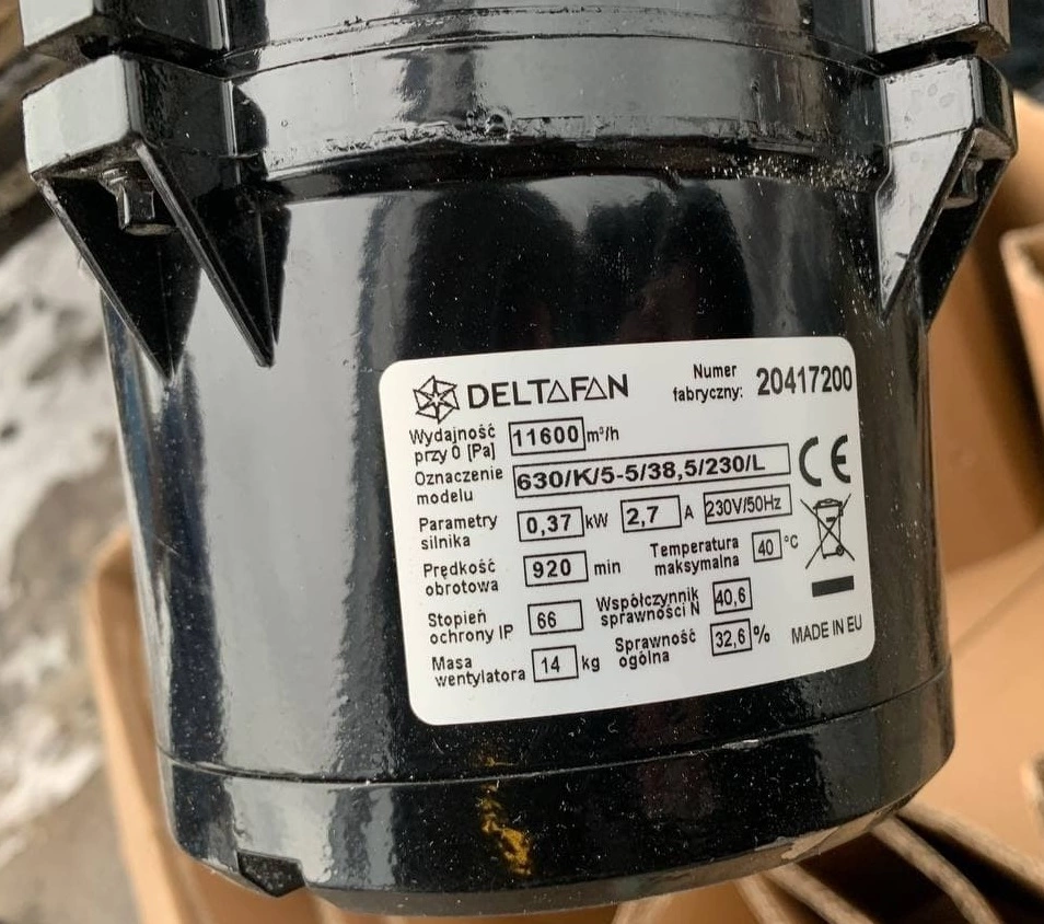Вентилятор шахтный, каминный Deltafan 630/K/5-5/38,5/230/L