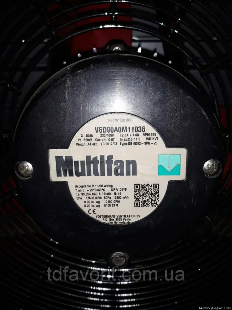 Вентилятор с прямым приводом Multifan 92 V6D90A0M11036 более эффективен и требует меньшего обслуживания по сравнению с ременными вентиляторами.