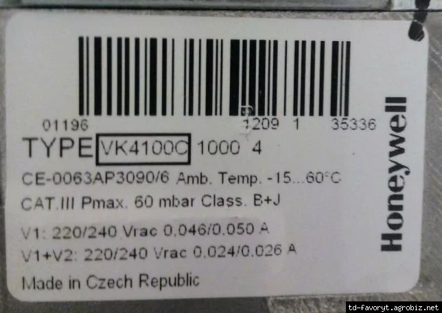 Технические характеристики Honeywell Газовый клапан VK4100С